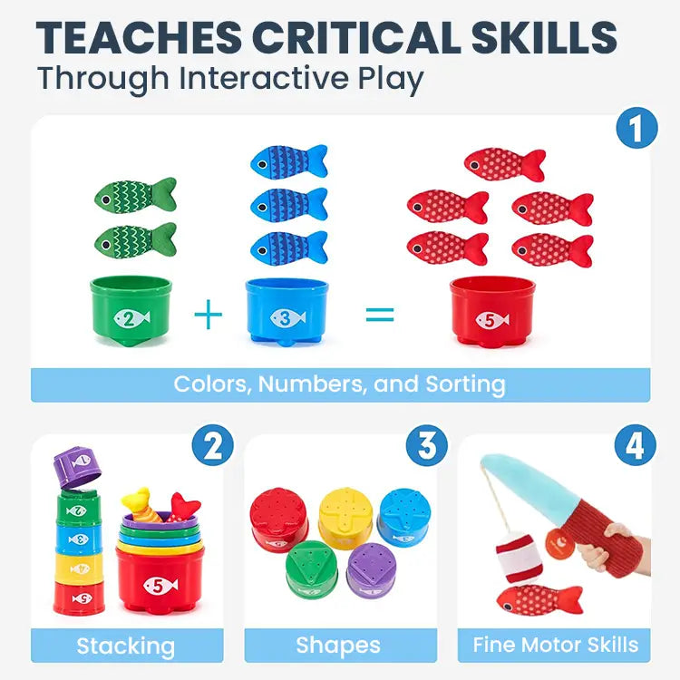 From color matching and counting to size differentiation and spatial awareness, TinyFisher™ helps toddlers develop early math and cognitive skills while boosting hand-eye coordination and fine motor abilities.